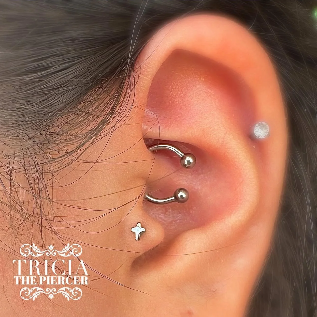 Hi! I’m Tricia the piercer. I’ve been piercing professionally in Bastrop County for coming up on 8 years. I specialize in curations, safe piercing practices, and ensuring clients have a fun and safe experience! I would love to see you. As a person who has extreme metal sensitivities, carrying quality implant grade jewelry is my passion. Please feel free to check out my work on Instagram and tap Book Now to schedule! See you soon :)